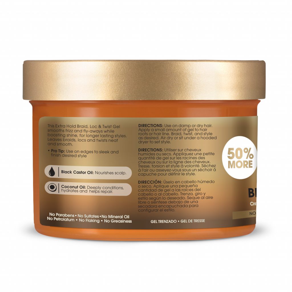 This Extra Hold Braid, Loc, & Twist Gel smoothes frizz and flyaways while boosting shine for longer-lasting styles. Leaves braids, locs, and twists neat and smooth.