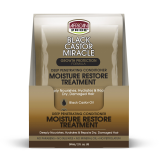 This Moisture Restore Treatment deeply conditions and hydrates extremely dry, damaged hair. Specially created with black castor oil, coconut milk, and shea butter, this treatment deeply penetrates hair strands and restores moisture.
