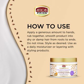 This versatile curling cream blends Shea Butter and Flax Seed Oil to provide deep moisture, lasting definition, and radiant shine; leaving coily and curly styles smooth and bouncy with soft hold.