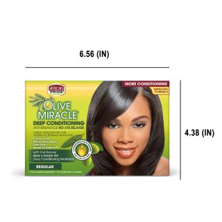 OLIVE MIRACLE® CONDITIONING Formulated to help strengthen and protect hair during the entire relaxer application process. This conditioning Anti-Breakage No-Lye Relaxer System leaves hair softer, smoother and more nourished than ever before. Our new vitamin-rich post-relaxer Aloe Vera Deep Treatment Conditioner packet is infused with Aloe, Castor & Biotin to deeply condition, moisturize and protect.