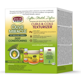 Soften, stretch, and define all textures with Olive Miracle Curls and Coils Texturizer. Enriched with Olive Oil, Shea Butter, and nourishing Herbal Extracts combined to deeply condition and moisturize your hair.